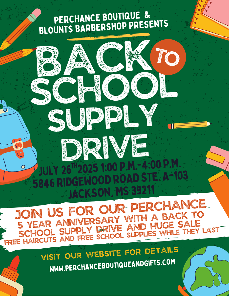 Mark Your Calendars for Our "Back to School Supply Drive 2025" & Perchance Apparel Anniversary Sale Event!!